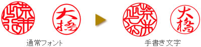印面デザインで個別に調整することはもちろんですが、最も有効な手段が、他の人や会社とは違う書体を使うこと。多くの書体からお好みにあった書体をお選びください。